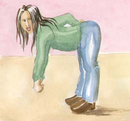 Sanningen är den att mitten av en människa sitter lite längre ner, vid ljumskarna eller där man kan böja sig framåt.